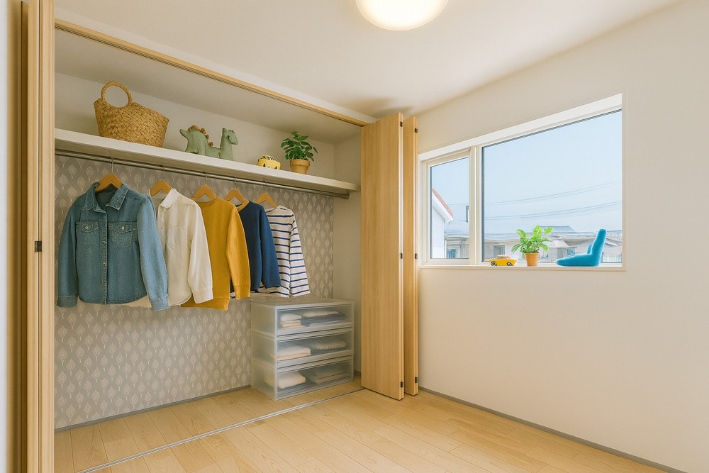 子育て視点の動線設計 リビング階段や大容量収納で「片付く間取り」。