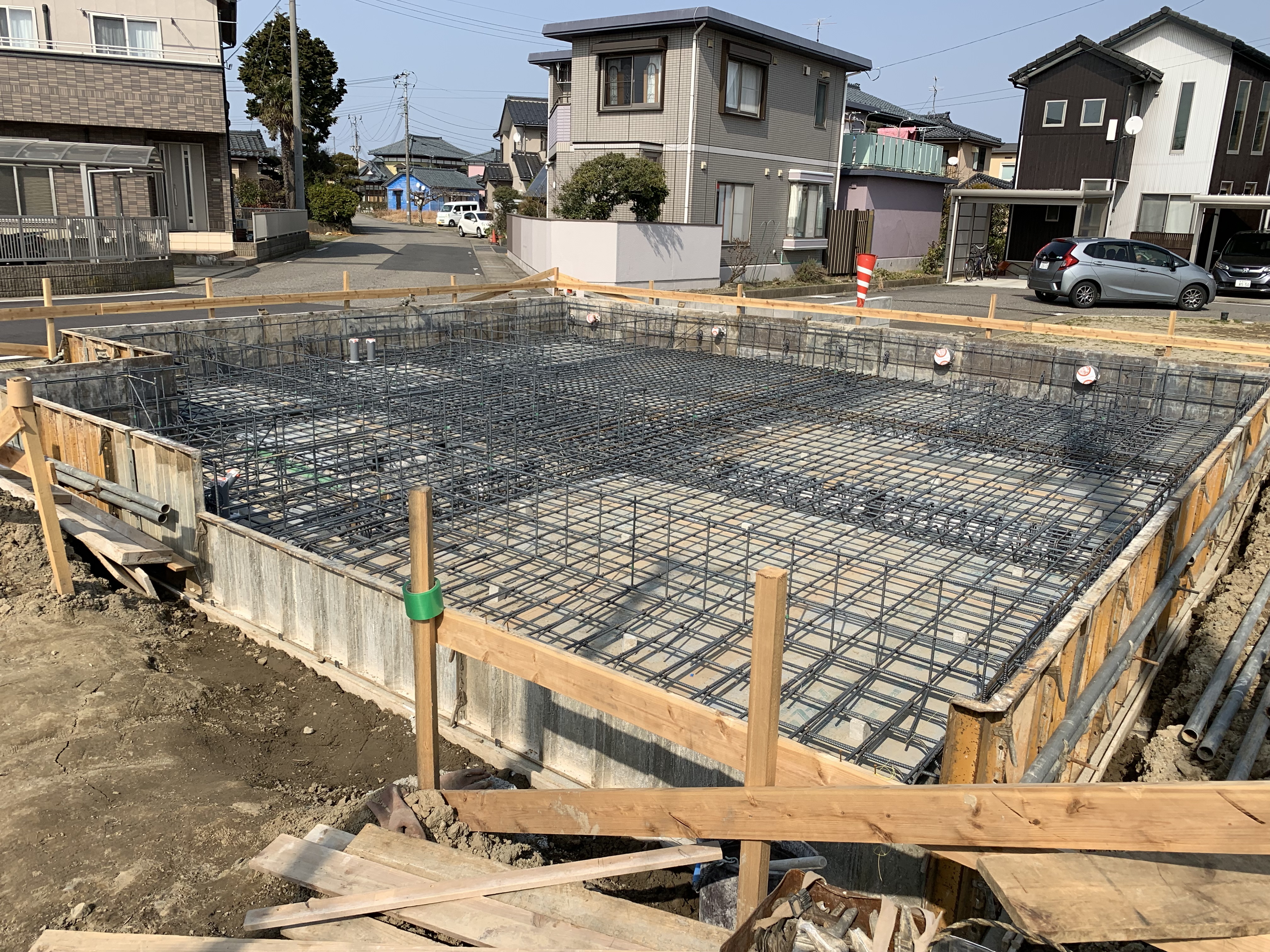 弊社の鳥原モデルハウスの配筋です。がっちり丈夫に組んであり、とても素敵です。(耐震等級3)