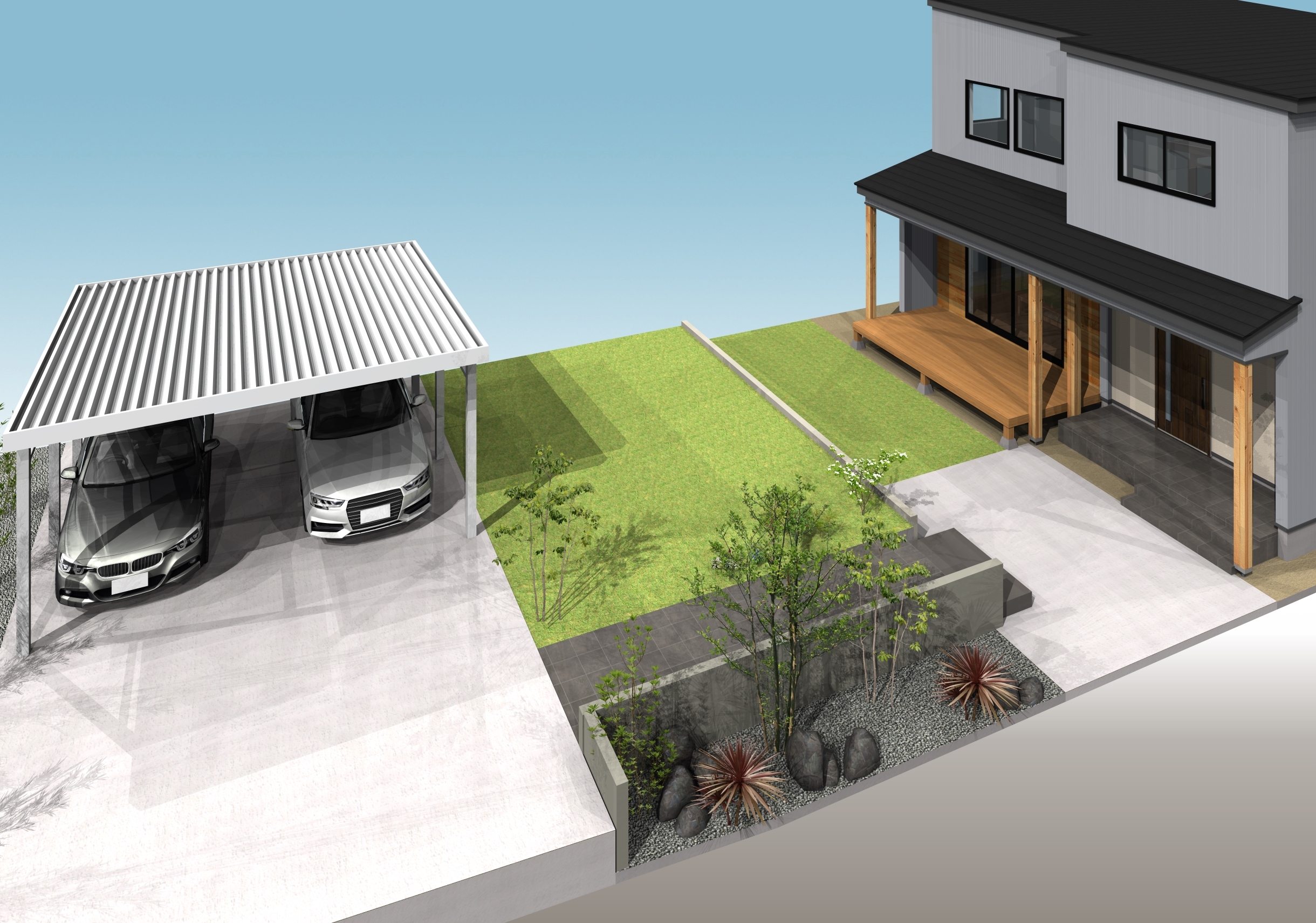 少し前にお引き渡し致しました物件の外構イメージです。