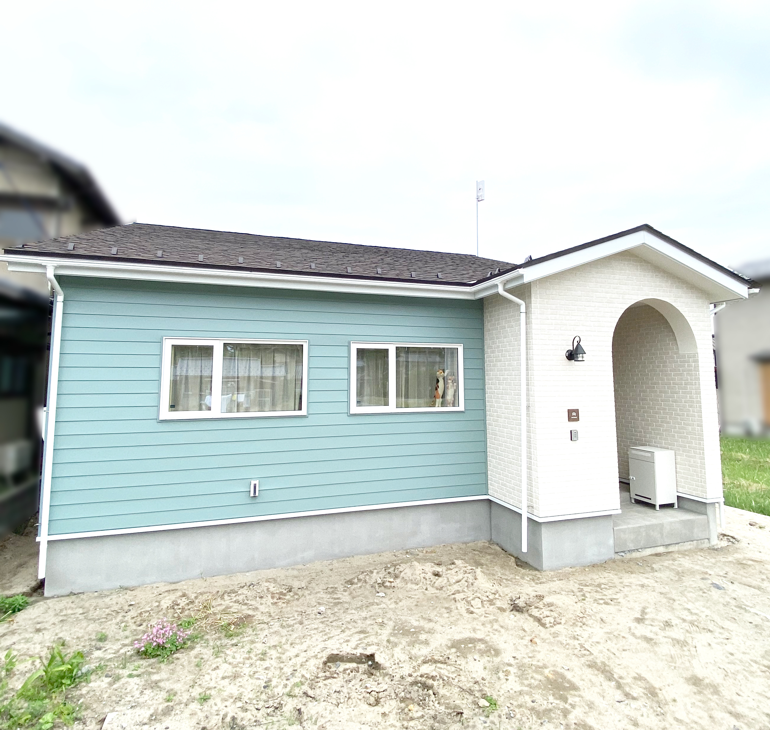 平屋 オークリッジブラウン色の屋根と北欧カラーの外壁