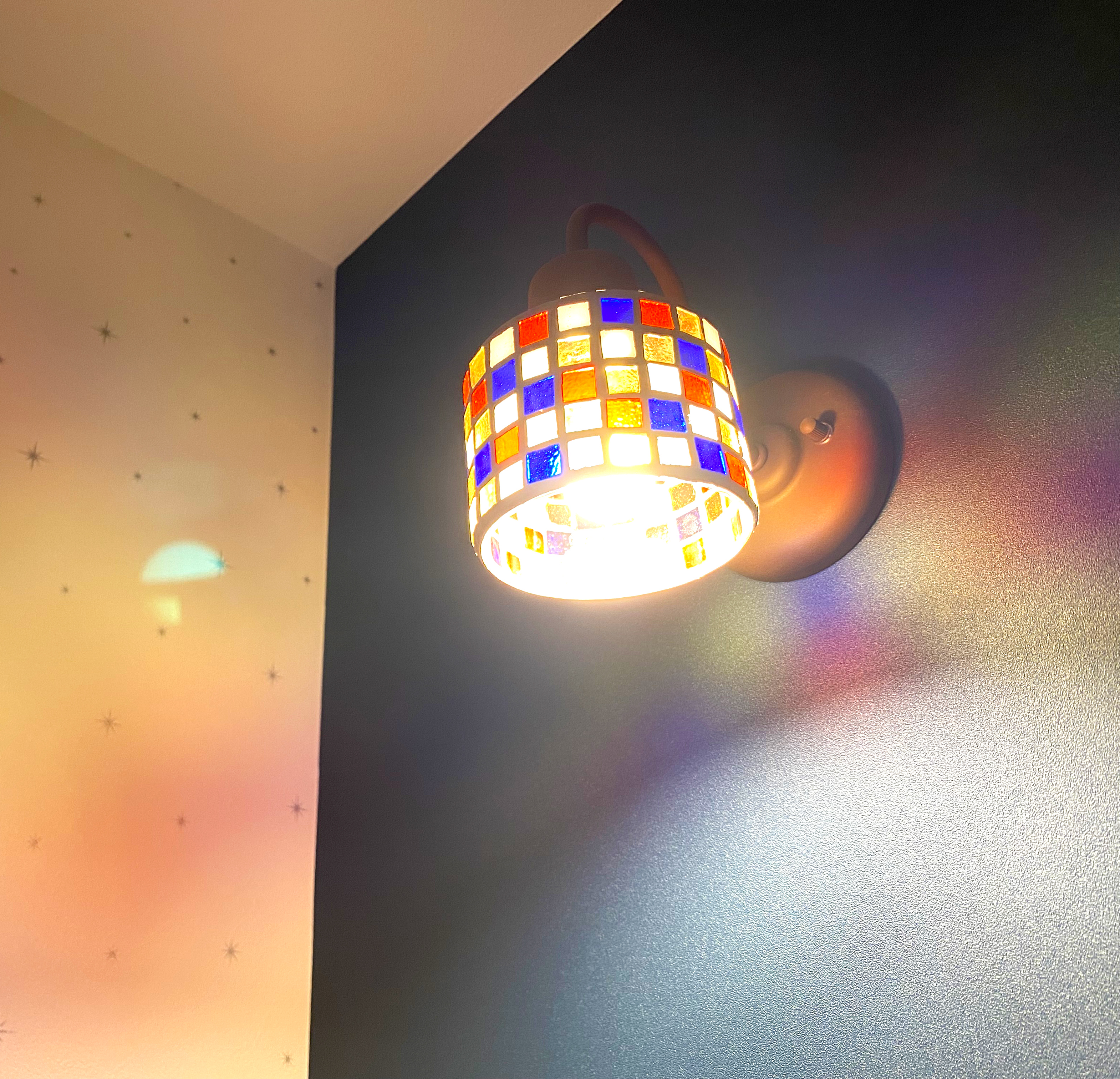 喫茶店にありそうなレトロモダンな照明。ステンドグラスが奇麗です。