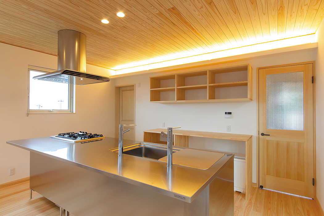 床には檜、天井には杉と、無垢材をぜいたくに使用した住まい。