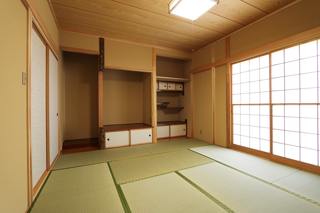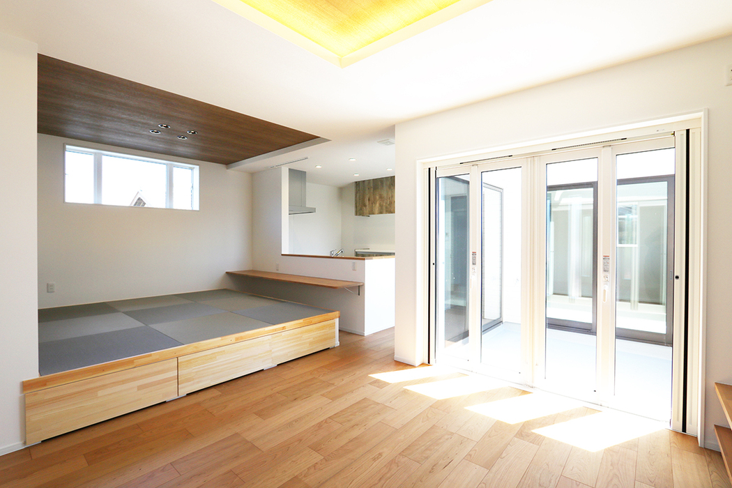 新築住宅 五泉市の二世帯住宅 #和室#小上がり和室 所在地- 耐震等級- 相当隙間面積(C値)- 外皮平均熱貫流率(UA値)- 再生可能エネルギーを除いた一次エネルギー消費削減率- 再生可能エネルギーを加えた一次エネルギー消費削減率-
